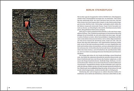 Atmosphärische Erinnerungstexte und zwei Essays über Berlin mit monochromen und farbigen Photographien von Thomas Höpker, im Duoton gedruckt. Leinenbindung, Fadenheftung, 68 Seiten, Großformat 28,2 x 21,4 cm, Erstausgabe.